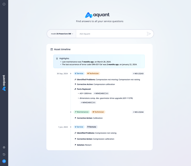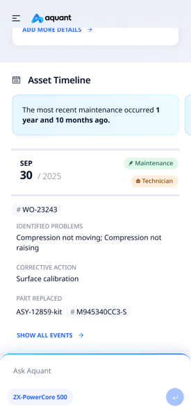 This enhancement is available on Aquant AI Web and Aquant AI Mobile.